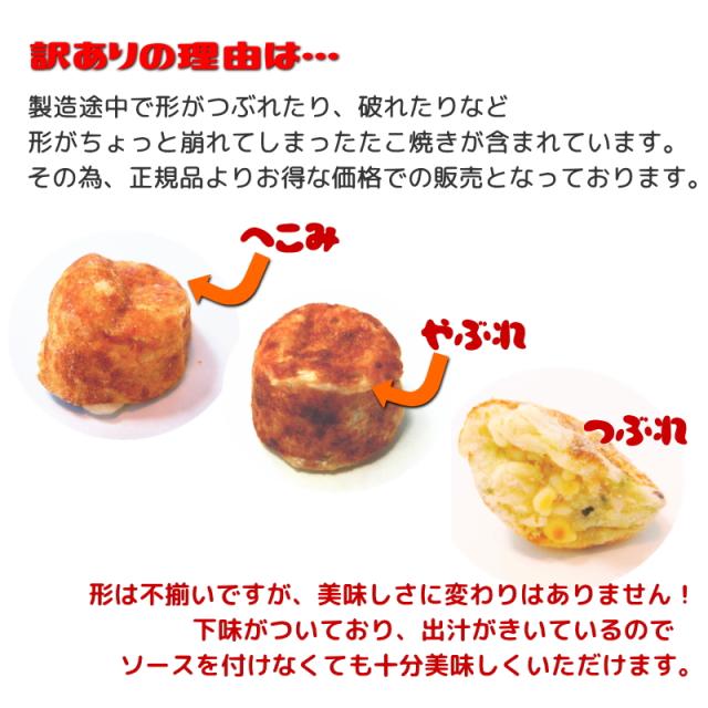 - 訳アリのわけは、不揃いだけなので、自分で食べるし問題ない。 中がトロッとして美味しいと思う、あとは温め時間、温め過ぎは注意して、具合を見ながら、時間を調節、温め個数にもよるので。 私はイカリのたこ焼き...