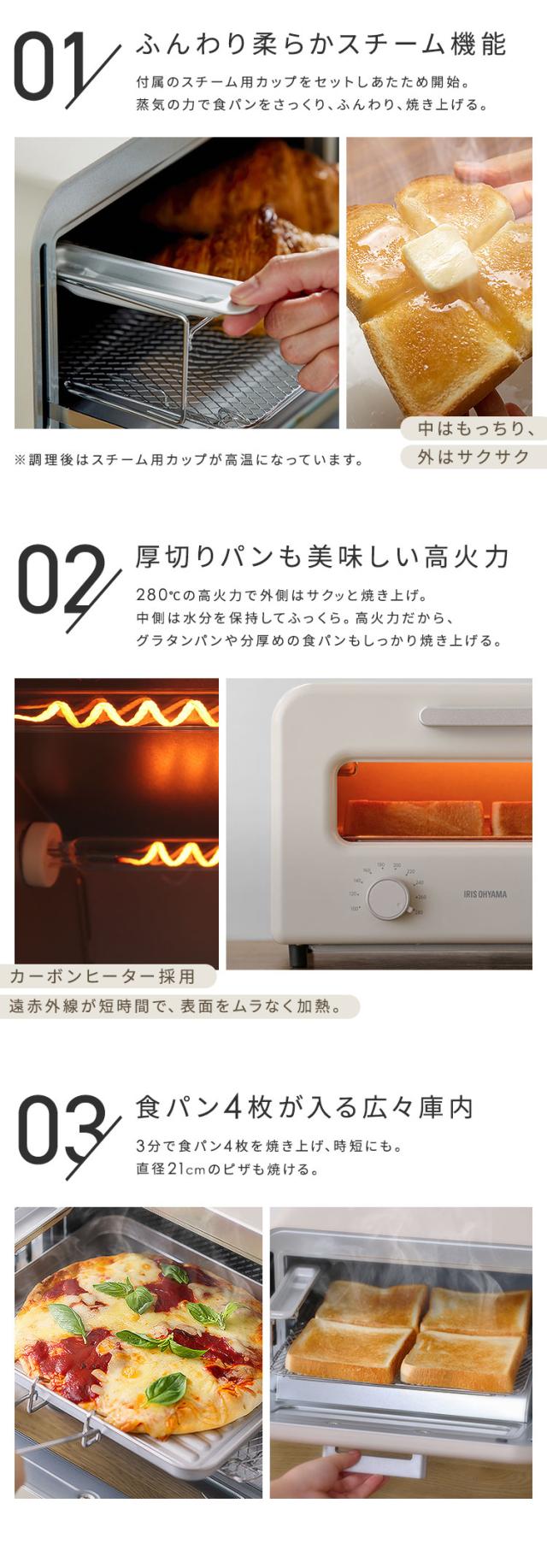 トースター 4枚 アイリスオーヤマ * SOT-401 オーブントースター スチーム式 カーボントースター 遠赤外線 高火力 厚切りトースト ピザ21cm オーブン プレゼント ギフト おしゃれ かわいい タイマー付 一人暮らし 新生活
