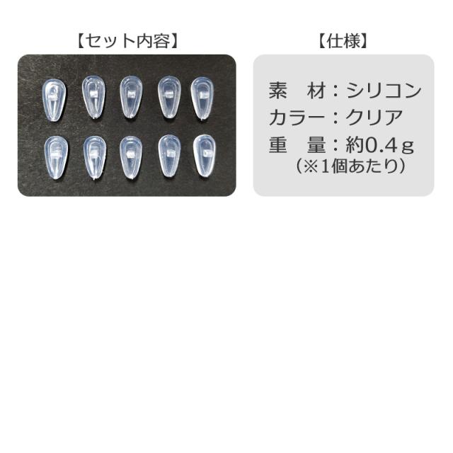 メガネ用 鼻パッド 10個セット 5ペアセット 交換用 ネジ式 眼鏡鼻あてパット ノーズパッド シリコン 透明 しずく型 めがね ズレ防止 ずり落ち防止 痛くない 取り付け 滑り止め 滑らない 跡がつかない パッド跡軽減 柔らかい 鼻パット エアクッション エアシリコン 調整 部品