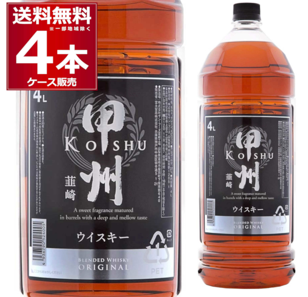 ウイスキー 送料無料 甲州韮崎 オリジナル ペット 37度 4L×4本(1ケース)[送料無料※一部地域は除く]