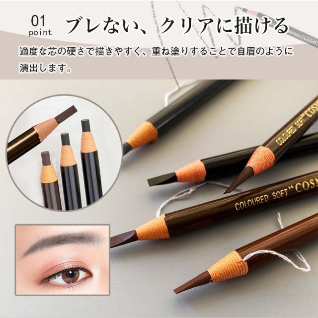 アイブロウ ペンシル 鉛筆 3点セット ピールオフ式 消えない 落ちない 描きやすい 長持ち 防水 初心者 眉ペンシル 眉ティント アイメイク 女性 男性