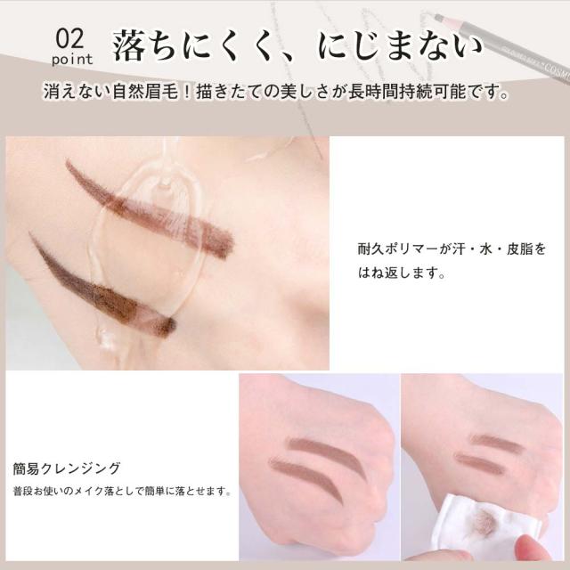 ●落ちにくく、にじまない、長時間に眉の型を保つことができ、自然に眉毛を整え、形やデザインも思いのままのスタイルが可能です。普段お使いのメイク落としで簡単に落とせます。