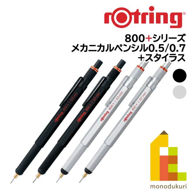 ロットリング 製図用シャープペン 800+シリーズ(メカニカルペンシル+スタイラス)【ブラック/シルバー/0.5/0.7】