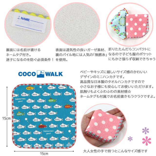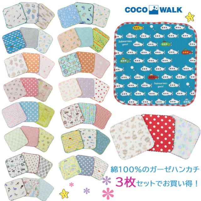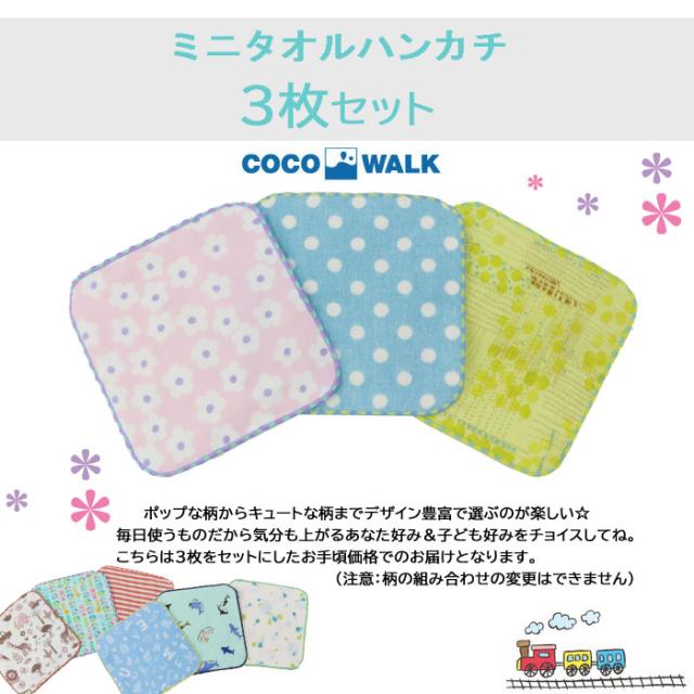 【ポスト投函可】ココウォーク ミニタオルハンカチ 3枚セット 子ども キッズ ベビー COCOWALK たおる ガーゼ 日本製 保育園 幼稚園 ab-556500