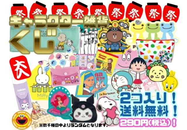 【送料無料】【クジ】【キャラクター雑貨】2個セット【サンリオ】【ディズニー】【ムーミン】【スヌーピー】【トムとジェリー】【カービィ】【ジョージ】【はらぺこあおむし】【ミニオン】【しんちゃん】【シナぷしゅ】【しんちゃん】等【大入福袋】【送料込】【ランダム