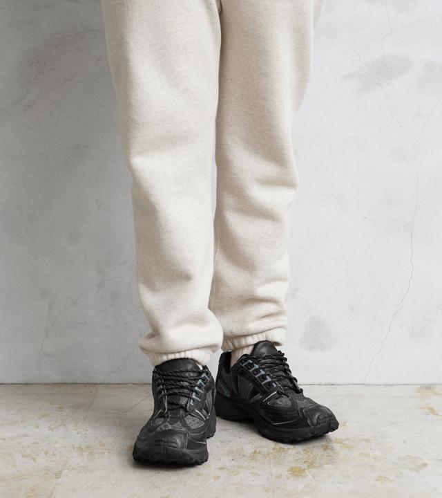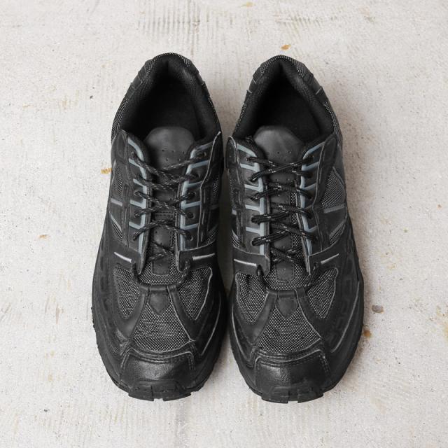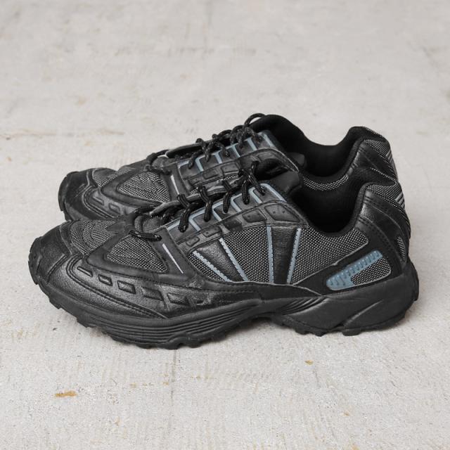 ドイツ軍にトレーニング用に支給されていたスニーカーです。比較的近代のモデルなので、インソールのクッション性や足首のホールド感など、履き心地や機能性にも優れた造りとなっています。ブラックベースのシックなカラーリングに、都会的なギア感のある凝ったデザイン。踵部分の多重ラインがポイントになっています。ブランドロゴなどが無い分スタイリングに取り入れやすく、デイリーに活躍するアイテムです。