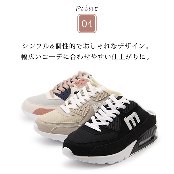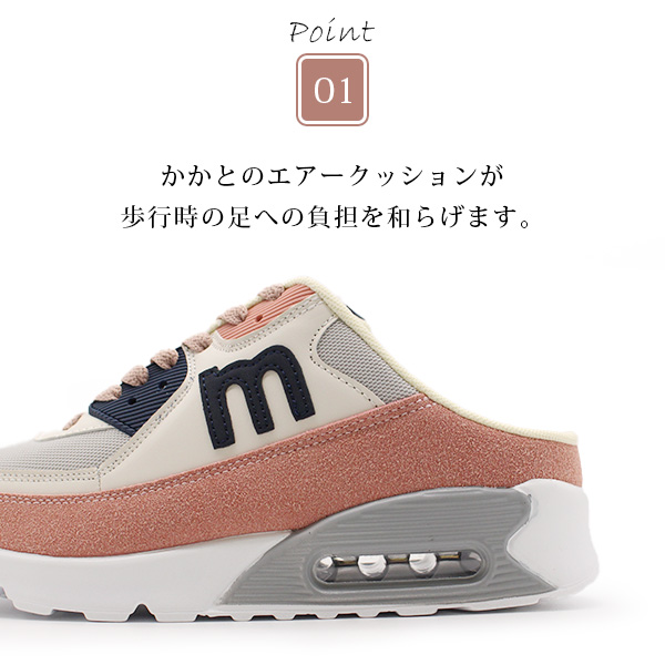 モズ スニーカー レディース 靴 かかとなし サンダル エアークッション エアーソール クッションシューズ ボリュームシューズ ボリュームソール 痛くない 疲れない 可愛い 衝撃吸収 軽量 軽い 幅広 3E おしゃれ シンプル 黒 ブラック ピンク ベージュ moz MZ-710