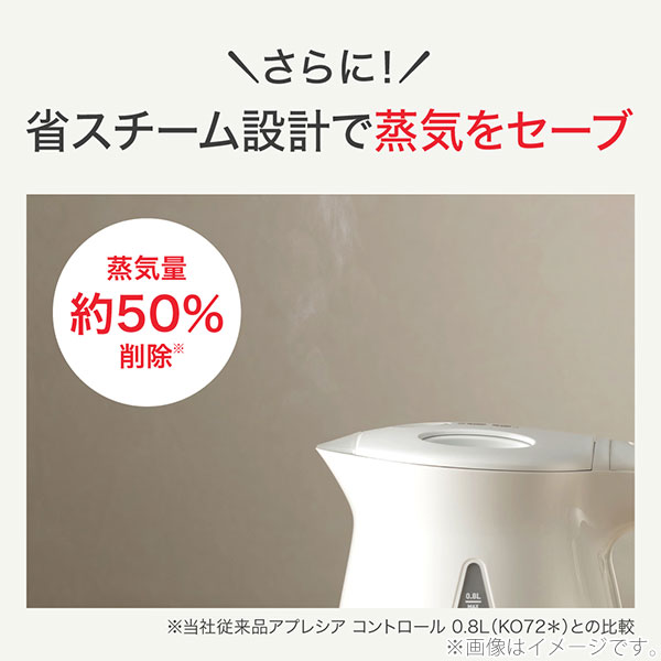 ■省スチーム設計 従来品の「アプレシアコントロール0.8L」と比較し、蒸気量を約50%まで削減した省スチーム設計です。
