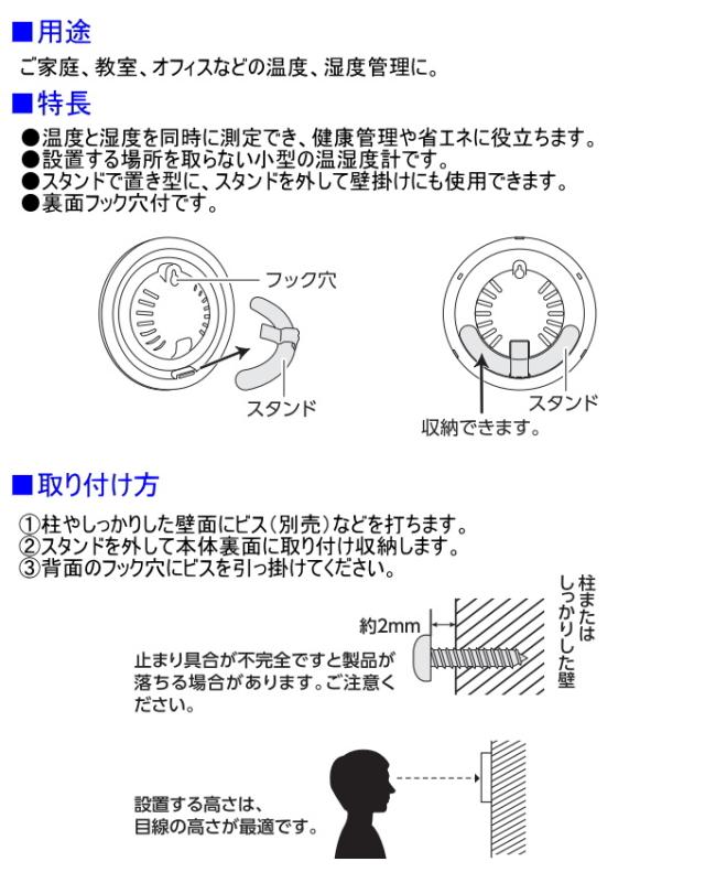 温湿度計 Q-2 丸型 10cm 大型 室内 部屋 オフィス 会社 教室 省エネ 温度管理 健康管理 壁掛け 置き型 スタンド