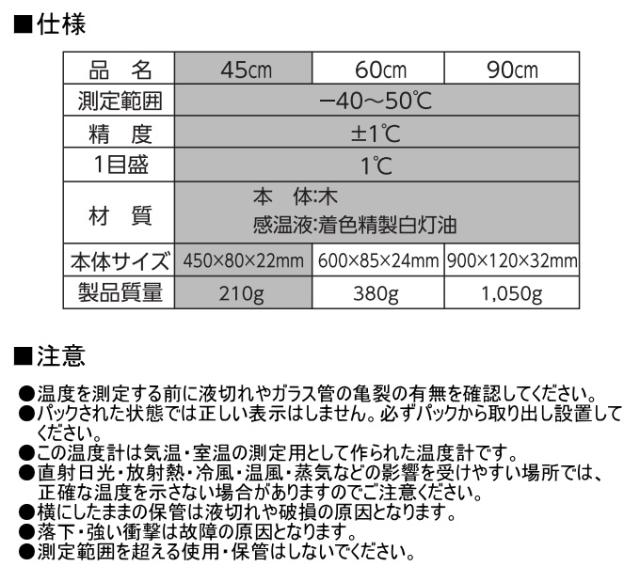 温度計 木製 45cm 75919 温度計 温度 温度管理 木製 シンプル 大型