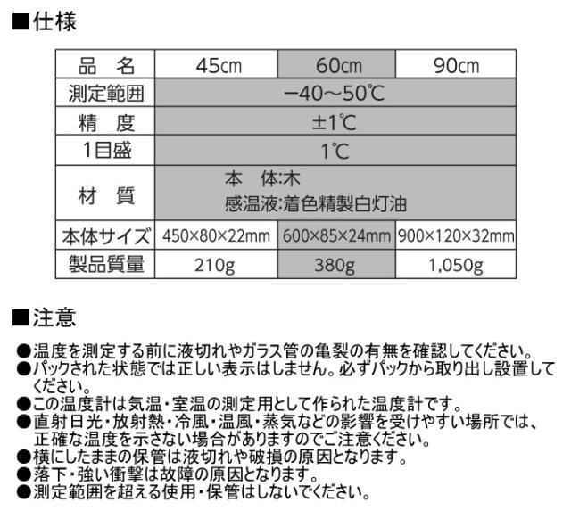 温度計 木製 60cm 75920 温度計 温度 温度管理 木製 シンプル 大型