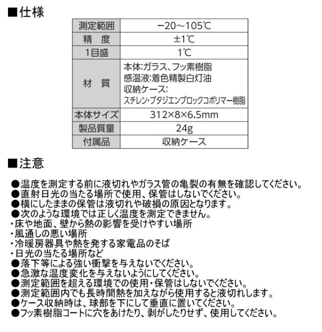 棒状温度計 フッ素樹脂コート H-1F 30cm -20〜105℃ 73217 地温 フッ素樹脂 収納ケース付 食品衛生法適合品
