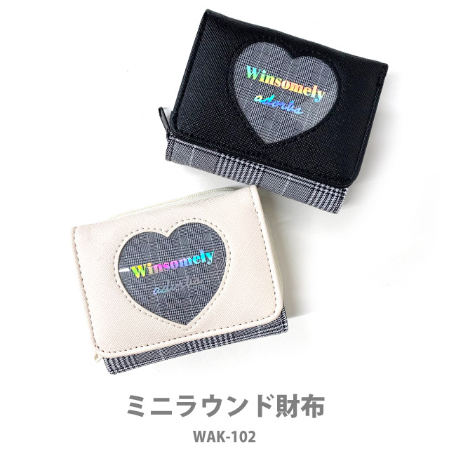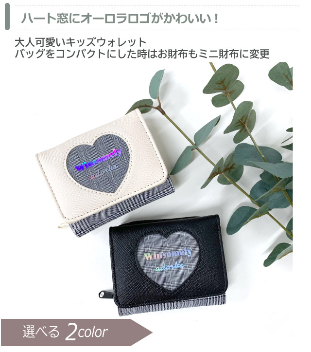 小学生 女子 財布 Pirica nonno ハート窓グレンチェック ミニラウンド財布 wak-102 ファスナー財布 可愛い 女の子 ミニ財布 子供用 中学生 高校生 修学旅行 人気 小さい財布 かわいい コンパクト 折りたたみ お 財布 さいふ 三つ折り財布 誕生日プレゼント キッズ財布