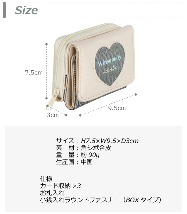 ■イメージ・その他:おしゃれ お洒落 人気 人気 ランキング 可愛い かわいい 使いやすい 大容量 黒 ブラック グレー チェック グレンチェック ハート 大人可愛い 大人かわいい 大人っぽい レディース財布 3つ折り財布 三つ折り財布 小さめ ミニ ミニサイズ 包装 無料ラッピング ラッピングバッグ