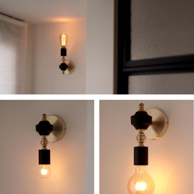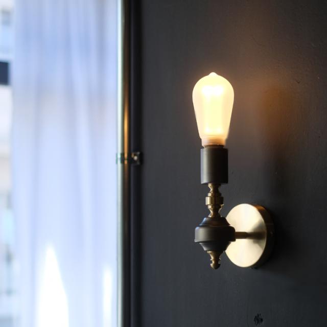 シェードのない1灯用のブラケット照明は、エジソンバルブLED電球との相性抜群。