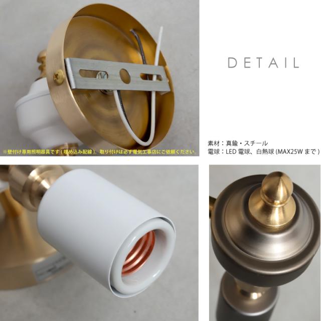 真鍮素材(ブラス)をベースにし、レトロなスチールパーツの異素材を組み合わせた壁掛け照明は、インテリアのアクセントにおすすめです。