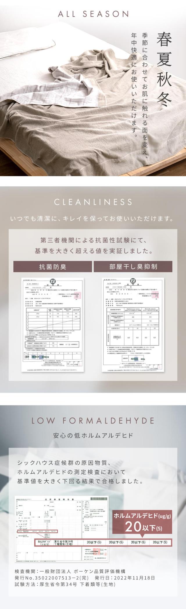 暑い日にはさらっとムレず、寒い日にはふわっと掛けて、オールシーズン快適に使えます。