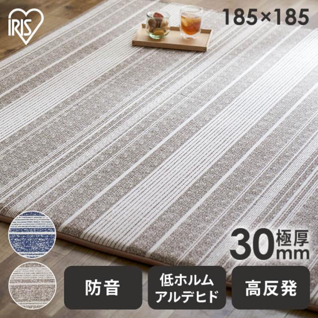ラグ ラグマット 2畳 185×185 ラ・クッションラグ ラクッションラグ アイリスオーヤマ * ACRBO-1818 ラグカーペット 厚手 夏用 極厚 滑り止め付き 厚い おしゃれ 北欧 絨毯 センターラグ リビング ウレタン 撥水 オールシーズン ひんやり クール 接触冷感 ボーダー