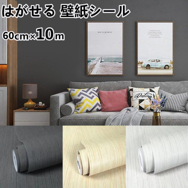 壁紙 10m 張り替え 無地 自分で 簡単DIY のり付き 防水 防カビ 壁補修 汚れ隠し リメイクシート60CMx10m