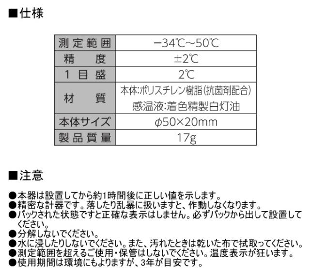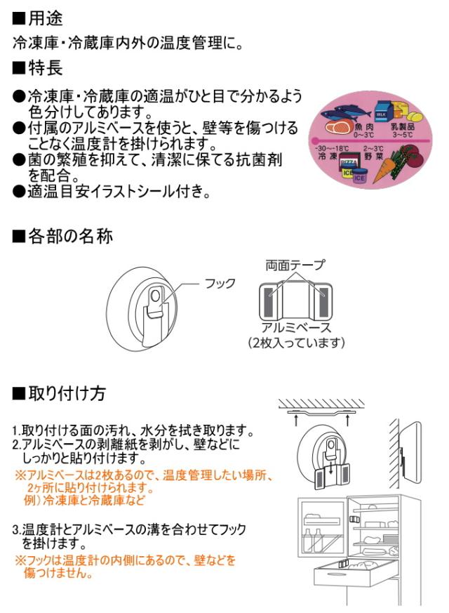 冷蔵庫用温度計 A-3 丸型 5cm 72703 温度計 冷蔵庫用 冷凍庫 抗菌プラスチック 適温目安シール付 ネコポス対応