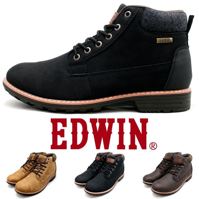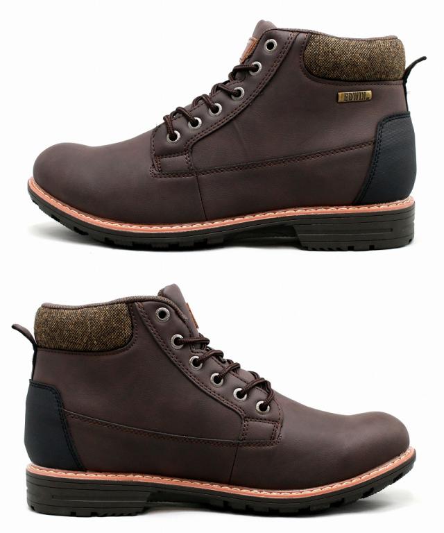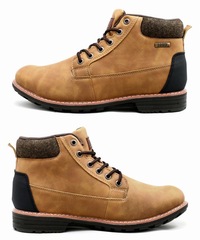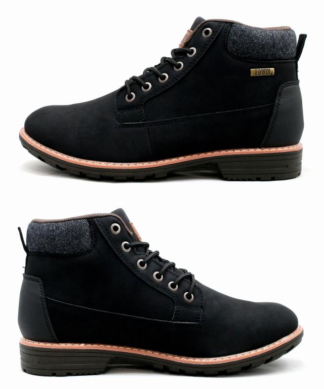 ブーツ メンズ 防水 軽量 幅広 カジュアルブーツ PUレザー 上質素材 おしゃれ スエード調 紐靴 EDWIN エドウィン edm9400n|正規販売店