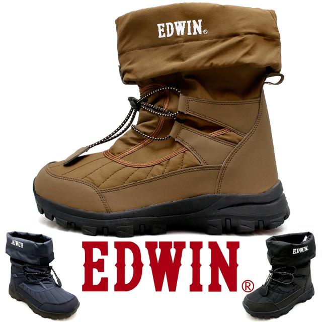 防寒 ブーツ 冬靴 スノーブーツ スノーシューズ メンズ おしゃれ 耐防滑 折り返し 裏ボア フリース生地 裏地 強撥水 アウトドア フィールドブーツ 3色 EDWIN EDW172|正規販売店