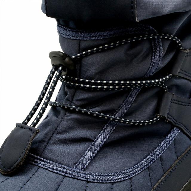 存在感のあるストラップ式のドローコードは足首周りと、折り返しのトップにて締付け感の調整が可能。