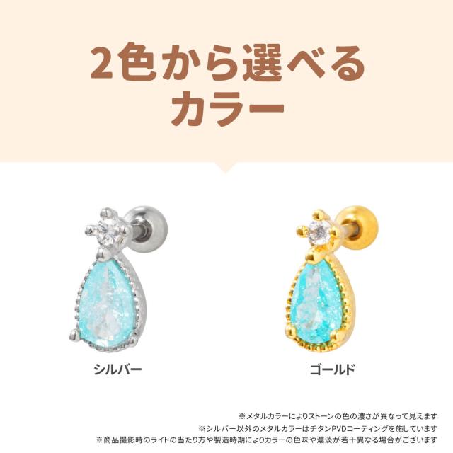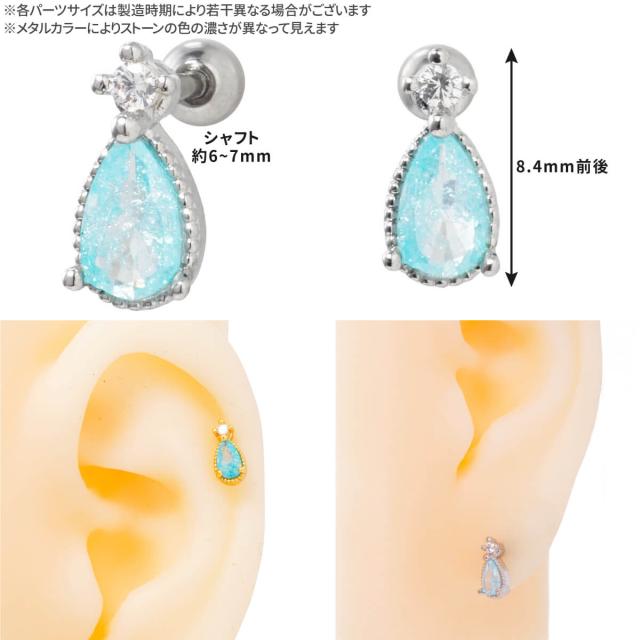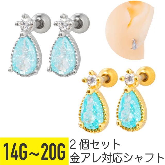 2個セット ブルー ストーン ティアドロップ ストレートバーベル 14G 16G 18G 20G ステンレス ジュエル ヘリックス 軟骨 ボディピアス