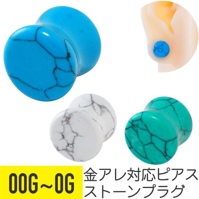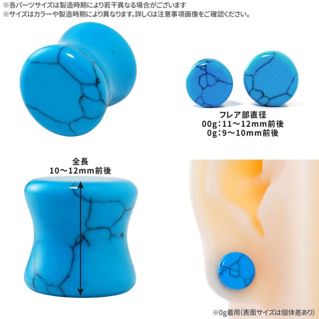 天然石風 フェイク ターコイズ プラグ 00G 0G イヤーロブ 拡張 ストーン ラージ ホール ラージゲージ 石