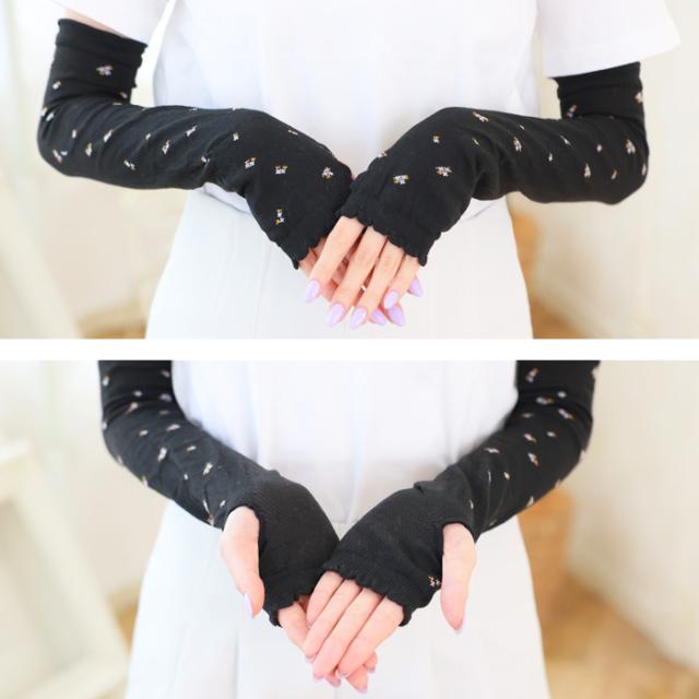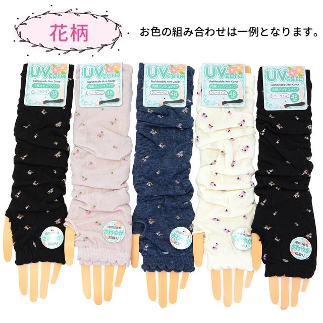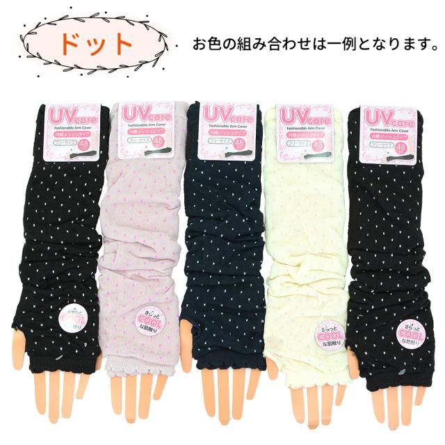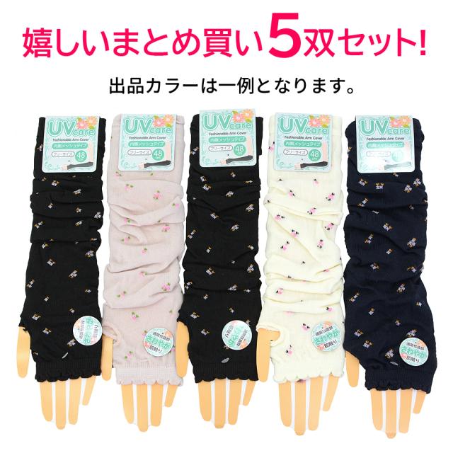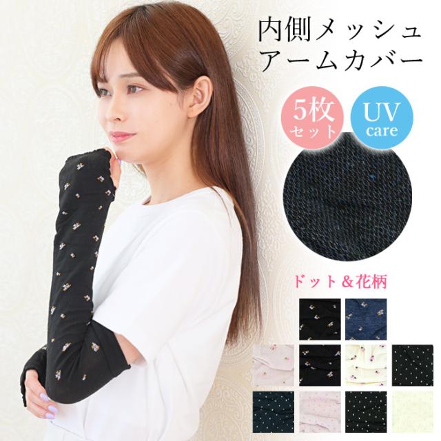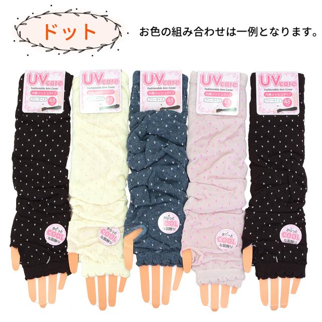 UV アームカバー ロング 5枚セット ドット柄 花柄 内側メッシュ 手袋 指切り 指なし 指穴付き レディース 【メール便送料無料】 腕カバー 48センチ 紫外線対策 UVカット UV対策 紫外線カット UVカット手袋 日焼け防止 母の日 プレゼント agesugi_sfa