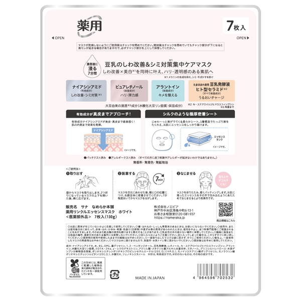 [販売名:サナ なめらか本舗 薬用リンクルエッセンスマスク ホワイト【医薬部外品】]