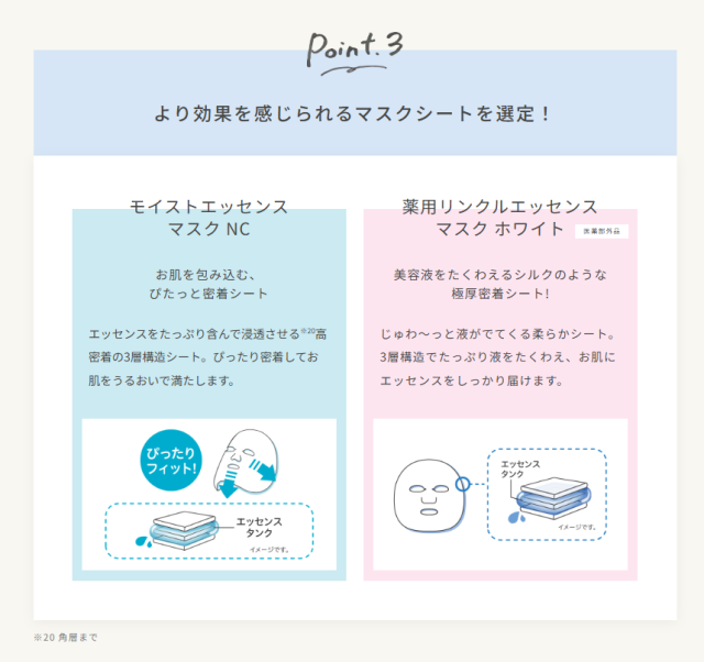 エッセンスをたっぷり含んで浸透※5させる高密着の3層構造シート。