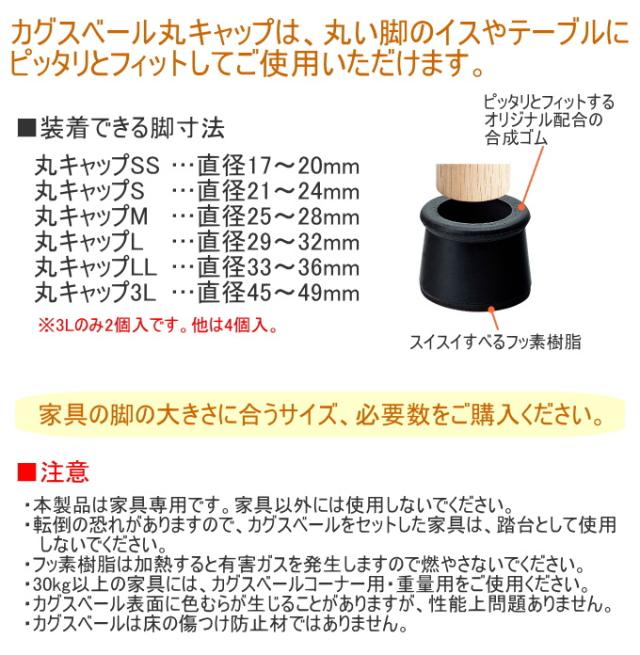 カグスベール 丸キャップ S 4個入り 日本製 丸型 キャップ イス テーブル 脚 家具スベール 家具移動 引っ越し お掃除 掃除 年末 模様替え