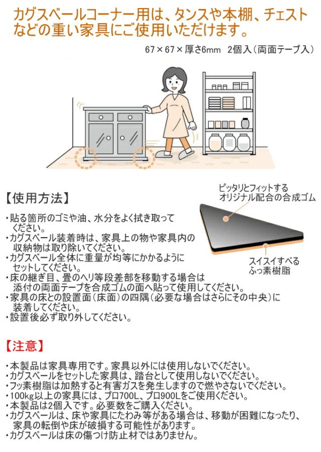 カグスベール コーナー用 2個入 日本製 ネコポス対応 家具スベール 家具移動 コーナー用 三角 テーブル イス タンス 本棚 チェスト 重い家具