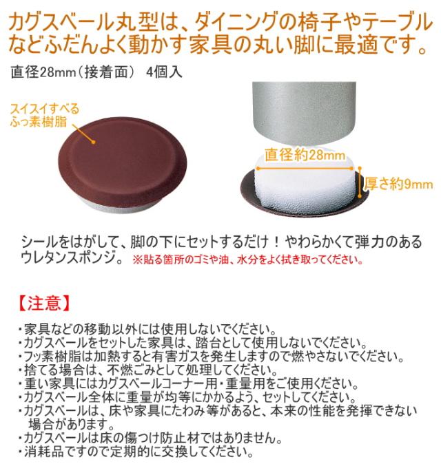 カグスベール 丸型 4個入 日本製 ネコポス対応 家具スベール 家具移動 丸型 スポンジ テーブル イス 軽い家具