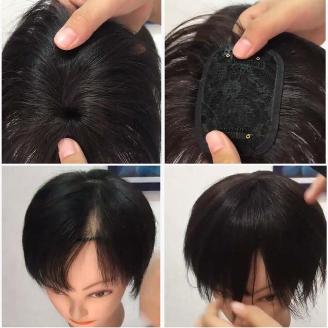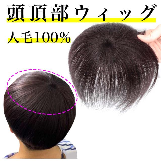 ヘアピース 頭頂部 ウィッグ 人毛100% 自然 つむじ ショート ストレート 通気性 前髪あり 薄毛 脱毛 白髪 部分ウィッグ トップウィッグ かつら つけ毛