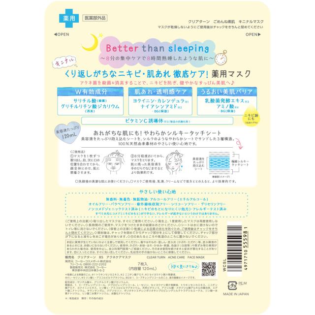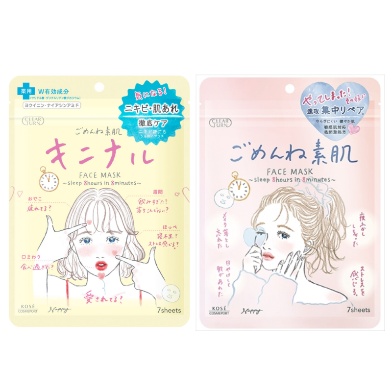 【在庫処分】クリアターン ごめんね素肌マスク キニナルマスク 選べる4袋 【最安値】 KOSE コーセーコスメポート シートマスク ニキビ 肌あれ コンディションケア フェイスパック フェイスマスク 人気イラストレーター NAPPYさんコラボ