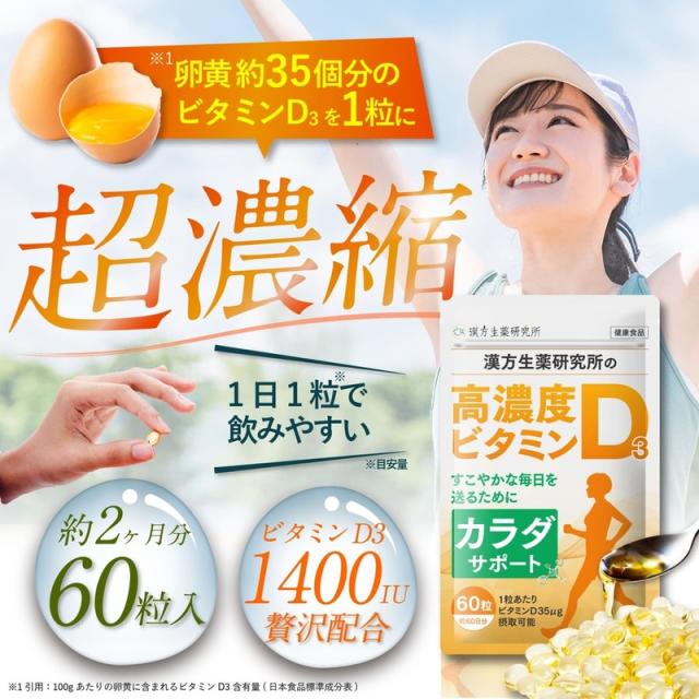 【60日分/60粒】高濃度ビタミンD3 1400IU 1粒卵黄35個分漢方生薬研究所 ソフトジェル サプリメント ビタミンD Vitamin D3 国内製造 小粒タイプ 送料無料