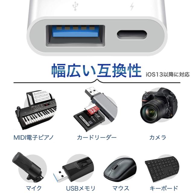 USB 変換アダプタ USBメモリ iPad iPhone 14 13 12 mini SE3 SE2 カメラ USB フラッシュ OTG 写真やビデオ データを双方向伝送 MIDI キーボード DAC マウス 最新iOSに対応