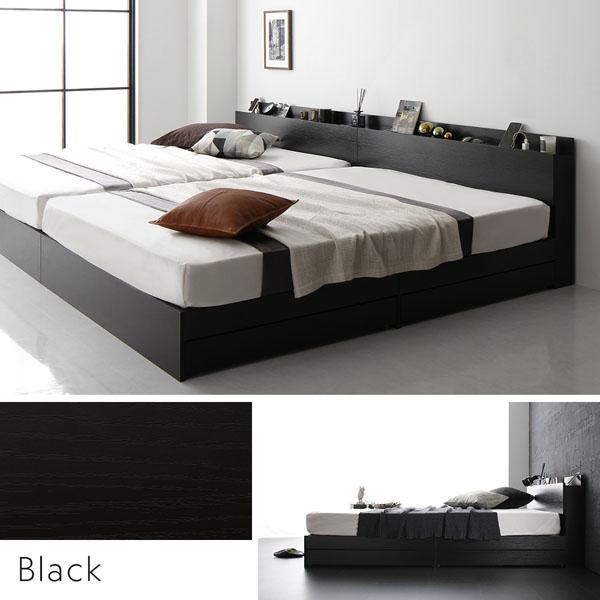 商品仕様: ベッド ワイドキングサイズベッド キングベッド 200 S+S 2層ポケットコイルマットレス付 黒 ブラック 2台セット 宮付 収納ベッド