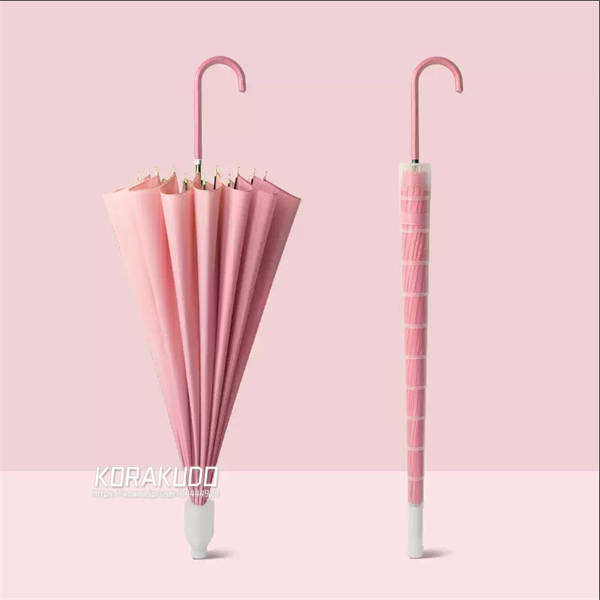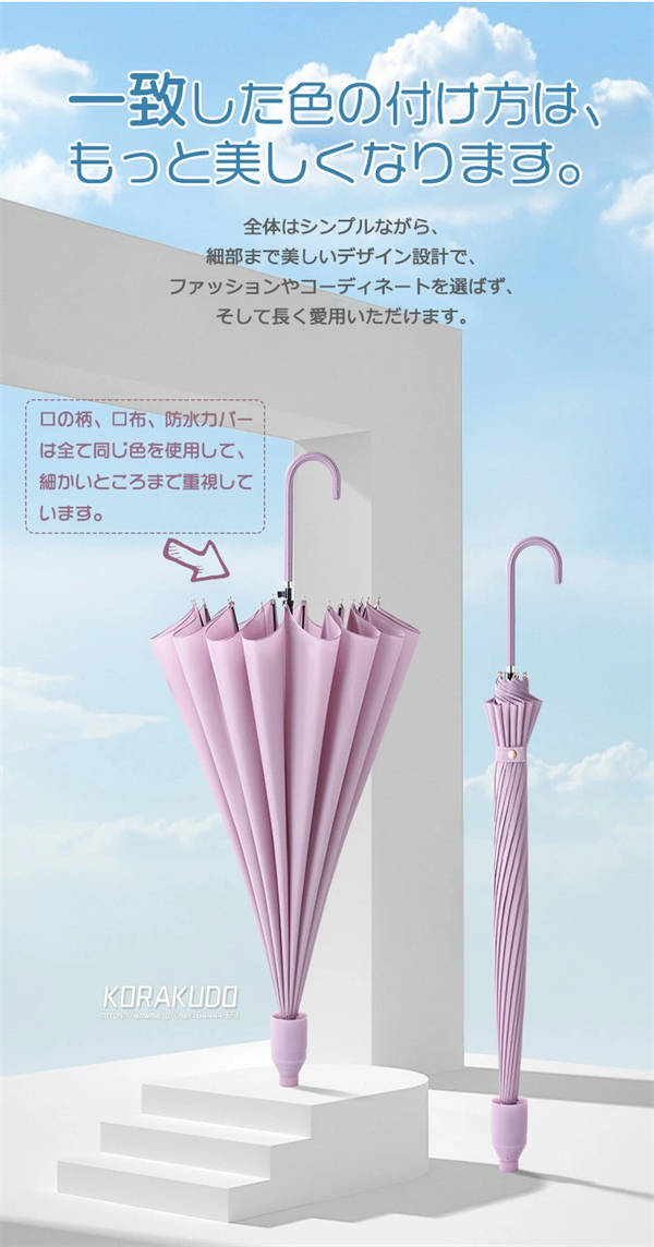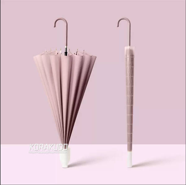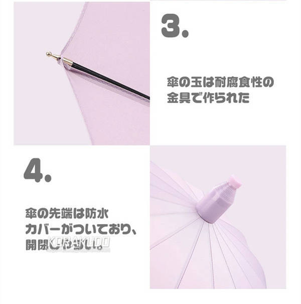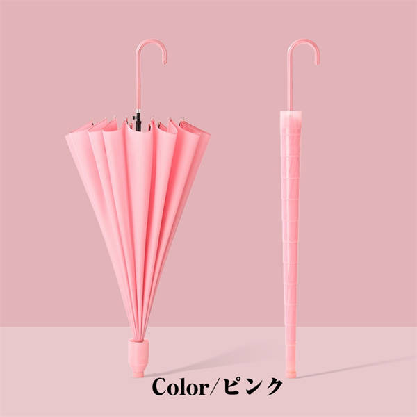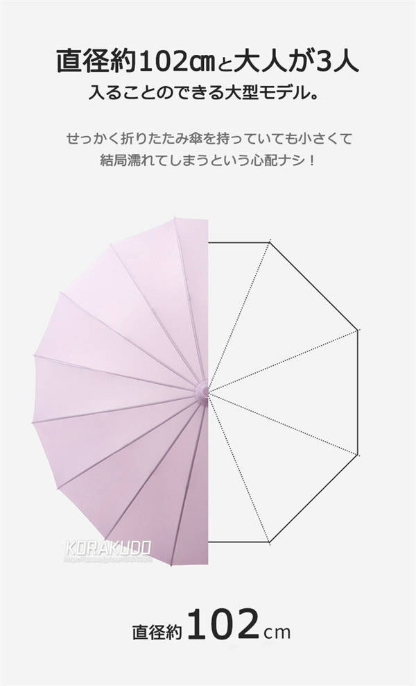 - ほんのりピンクでとっても可愛い色。レビューの中には重たいって書いてあったので気になっていましたが、私はそこまで気になる重さではなかったです! また大きな傘なので荷物が多くても安心でした。