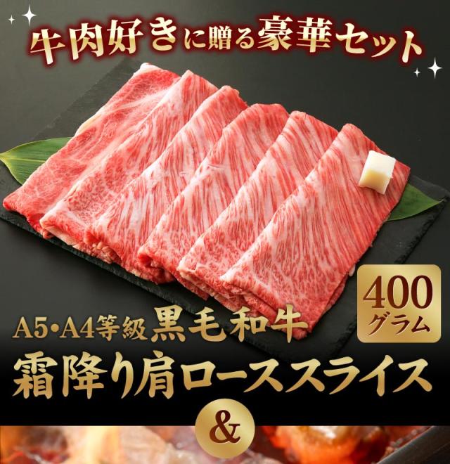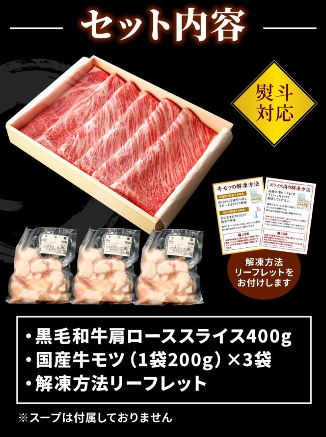 黒毛和牛 霜降り肩ローススライス400g & 厳選国産牛 特選ホルモン 600gセット お歳暮 ギフト 国産 和牛 モツ 牛モツ 小腸 もつ鍋 モツ鍋 冷凍 国産牛 お肉 牛肉 お取り寄せ 冷凍