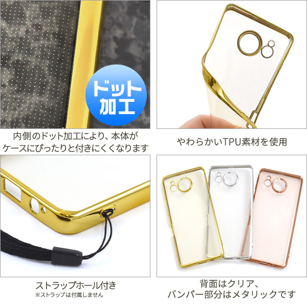 スマホケース AQUOS sense7 plus用 スマホカバー メタリック ソフトケース A208SH用 透明 クリア カバー ストラップホール 保護 TPU素材 やわらかい バンパーケース シンプル オシャレ 着脱簡単 アクオスセンス7プラス