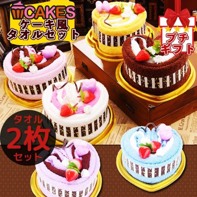 タオル ケーキタオル 2枚セット ハンカチ タオルハンカチ ブランド レディース プレゼント 女性 プチギフト ギフト 雑貨 ハンカチタオル お礼 送別会 お返し 子供 ケーキ 一歳 退職 小学生 飾り 花 チョコ 実用的 お母さん 入園祝い 花 ハート やけました