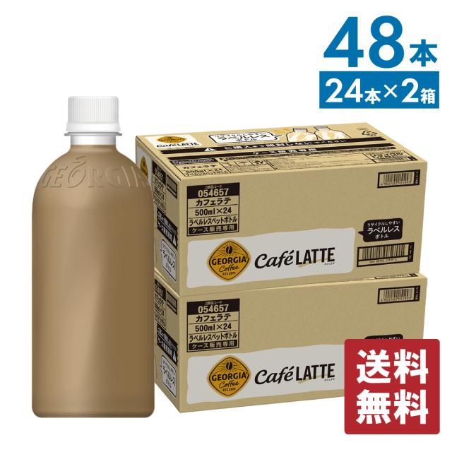 ジョージア カフェラテ ラベルレス 500mlPET×24本×2箱 計48本【送料無料】