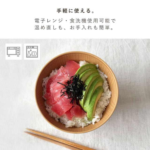 お椀 どんぶり 14.5cm 食器 食洗機対応 レンジ 割れない 軽い スタッキング 木目 おしゃれ Natural レンジ京型欅杢目丼 ナチュラル BPAフリー 割れない食器