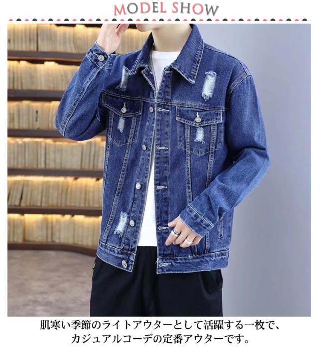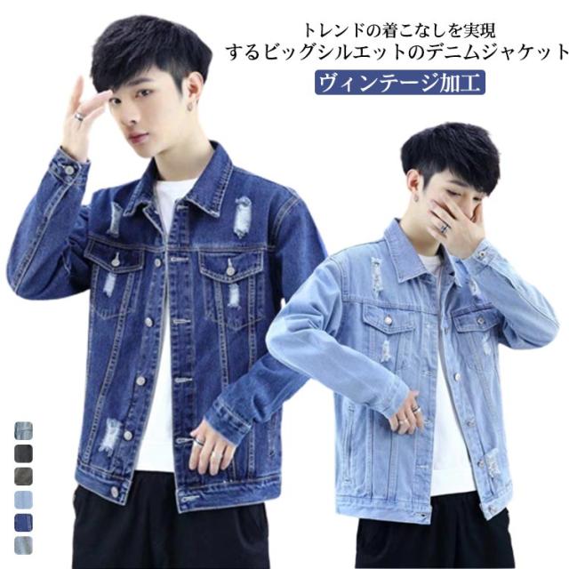 デニムジャケット ジージャン メンズ ビッグシルエット アウター おしゃれ デニム 大きめ メンズ メンズ ゆったり トレロ ヴィンテージ加工 カジュアル ストリート 20代 30代 40代 メンズファッション Gジャン 春 夏 大きサイズ S-4XL