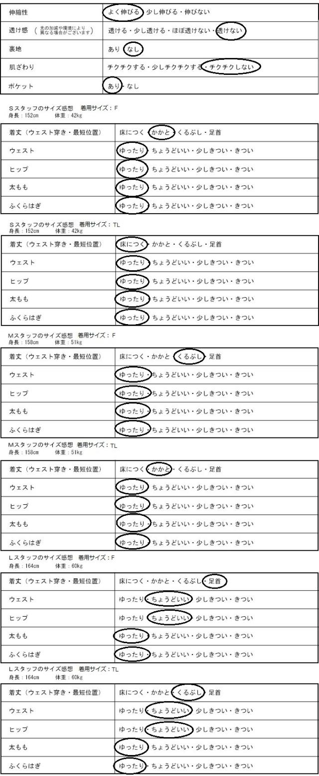 ・TLサイズは、ウエストなどのサイズ感はFサイズと同じで丈のみ長く!