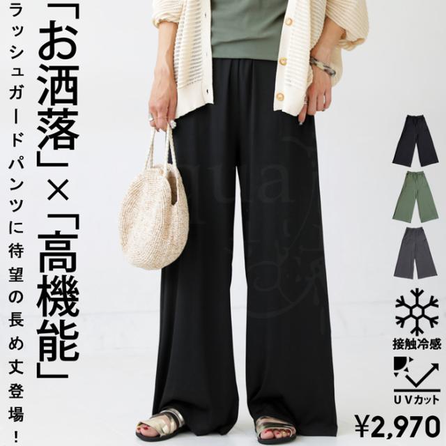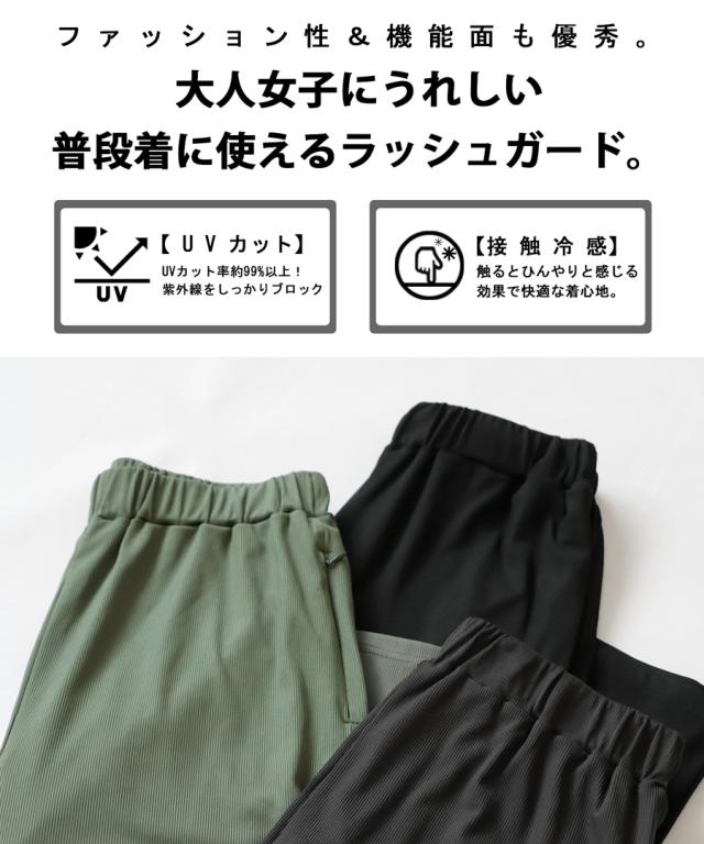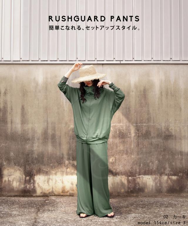 yp-00081 ラッシュガード ボトムス 接触冷感 UVカット 紫外線対策 ワイドパンツ 長ズボン セットアップ リブパンツ ロング丈 日焼け防止 日焼け対策 ひんやり 涼しい ポケット付き