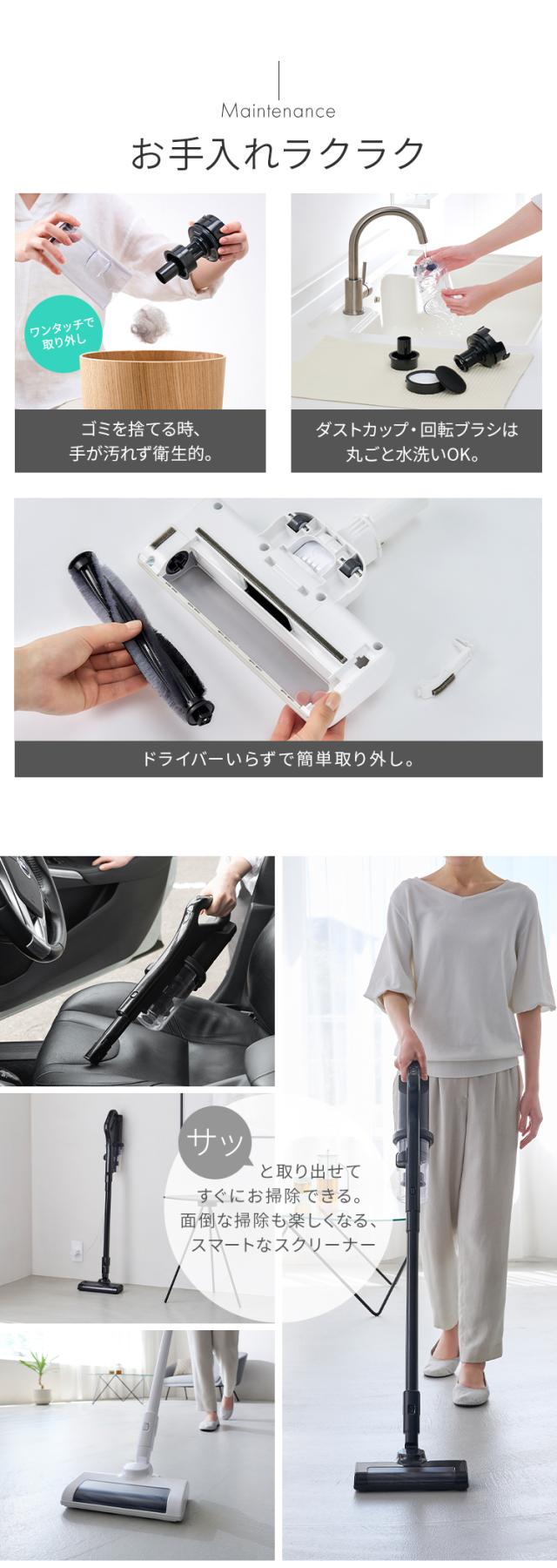 - 吸ったゴミを捨ててカップを元に戻す時ちょっとだけコツがいります、高齢の義理母にプレゼントしましたがその作業に苦戦してます。 慣れやコツさえ掴めばなんて事ないですがそこだけがちょっとだけ残念でした。